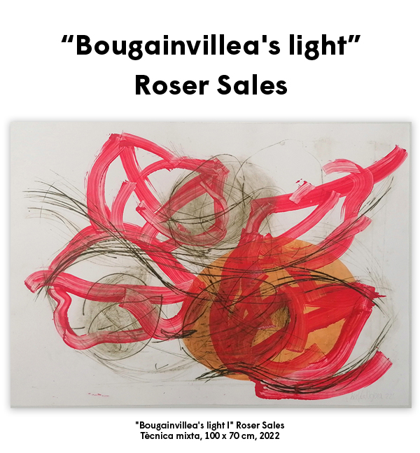 Estant a la Medina d'Assilah, al Marroc, passava cada dia de camí cap a l'estudi per un carreró estret, de parets blanques, el sostre del qual estava fet de flors de buguenvíl·lea. En entrar en aquest petit túnel, la llum era magenta, inundant-ho tot, filtrant-se a través de pètals de buguenvíl·lea. Hi havia una gran quantitat d'ells caiguts al terra, amuntegats, atrapats, movent-se entre les parets. Aquest petit moment, tot just un instant, em sorprenia cada dia. Sobre el terra, la composició de les flors variava cada dia. No vaig poder evitar emportar-me-les a l'estudi, jugar amb el munt que formaven i dibuixar-les, els seus colors; escriure les sensacions.